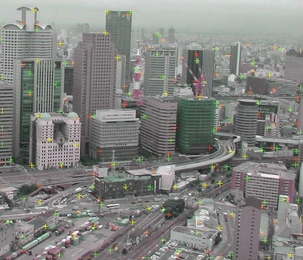 14 for visual comparison. A point found in the red band is shown by a red `+’, while a point found in the green band is shown by